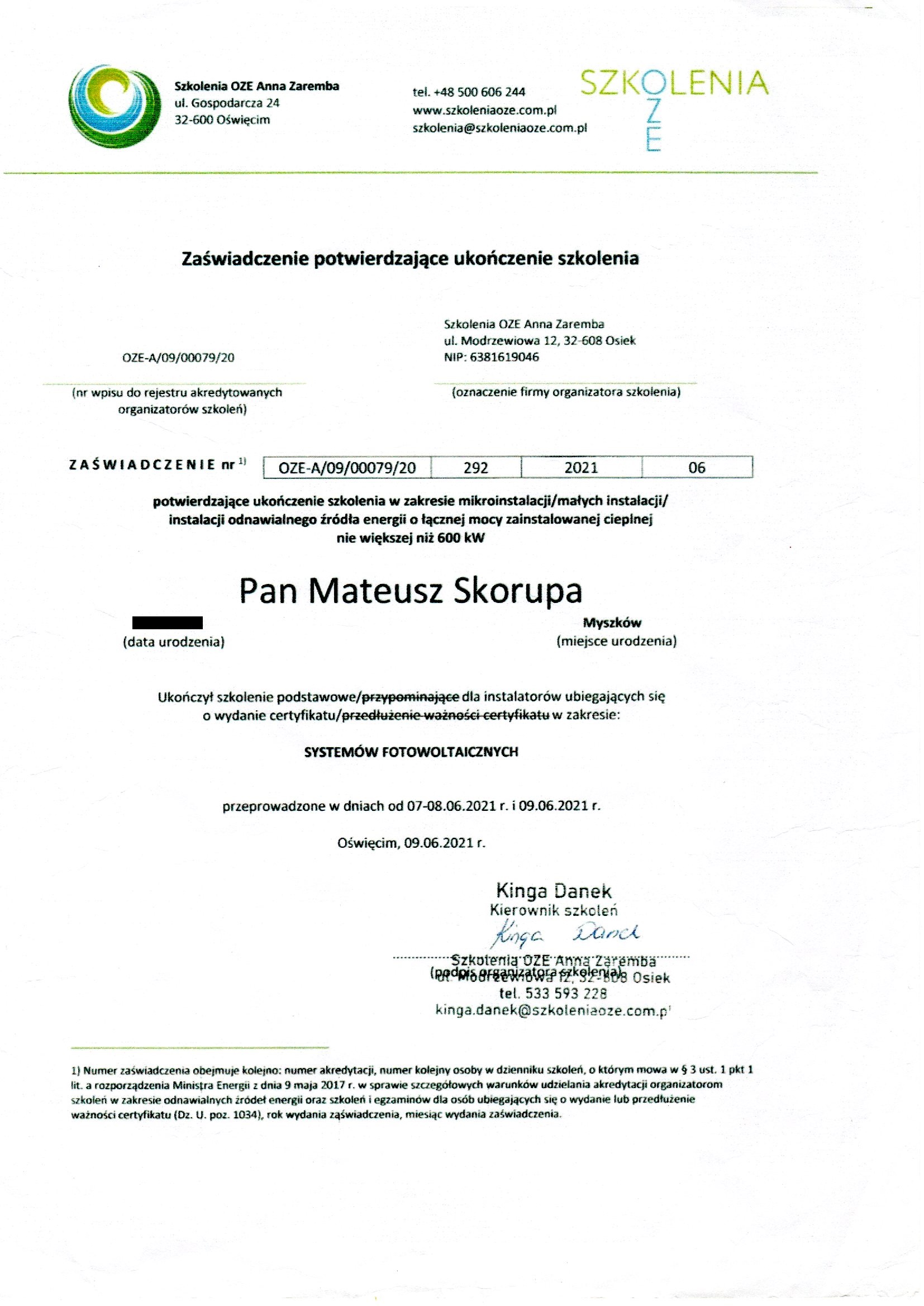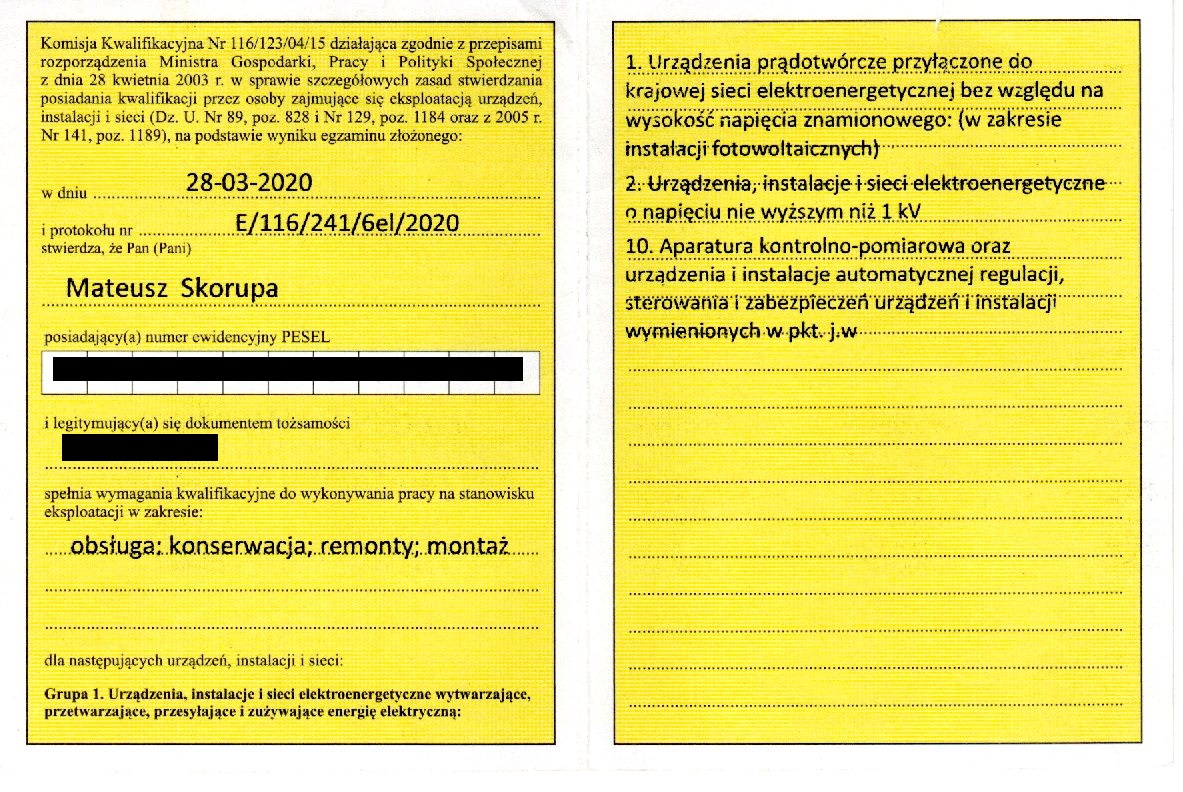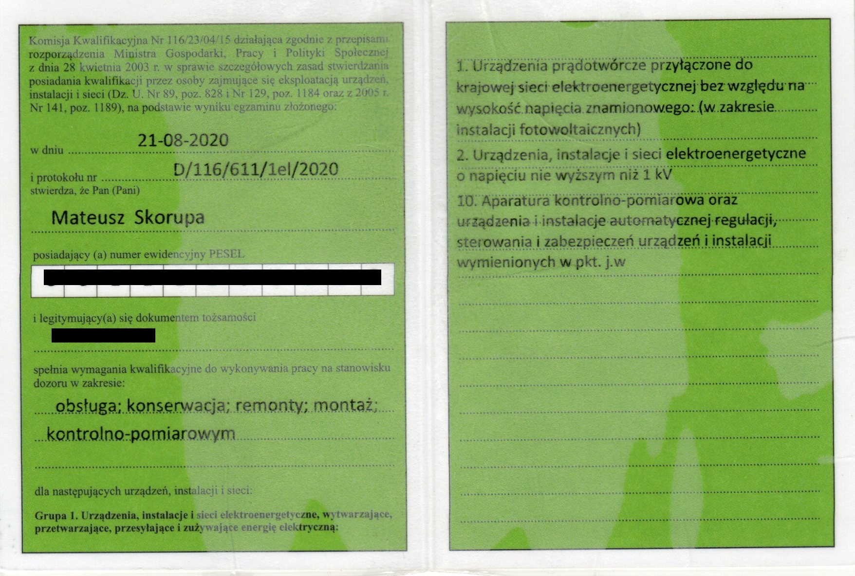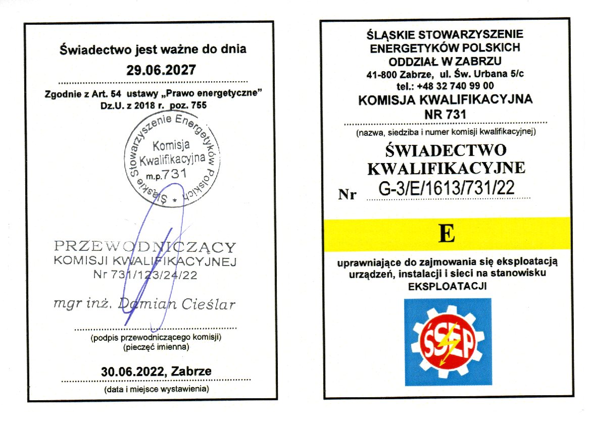 Jako firma M&S Photoenergy posiadamy szereg wymaganych uprawnień i certyfikatów. Wszystko po to, aby realizować zamówienia klientów z najwyższą starannością, wiedzą i profesjonalizmem.